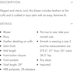 NWT Alice + Olivia Feather Blazer