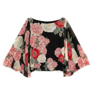 NWT Alice + Olivia Floral Accordion Pleat Sleeve Silk Blouse Black M Top