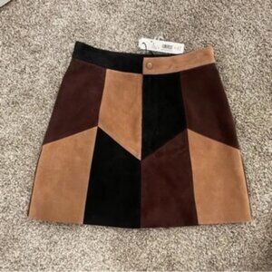 NWT Alice + Olivia Georgine Suede Patchwork Mini Skirt Size 0