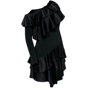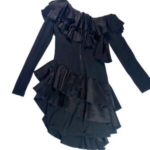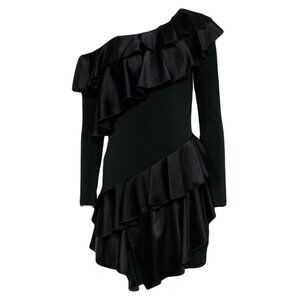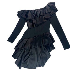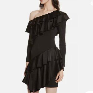 NWT Alice + Olivia Izzy One-Shoulder Black Asymmetrical Ruffle Dress Size 2