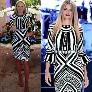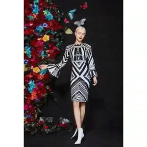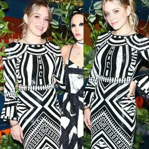 NWT Alice + Olivia Jae Sequin Fitted Cocktail Gown Dress Size 4 Black White
