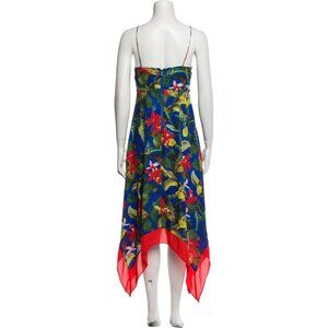 Alice + Olivia Slip Dress, Blue Red Orange Green Floral Flowers Tropical Print