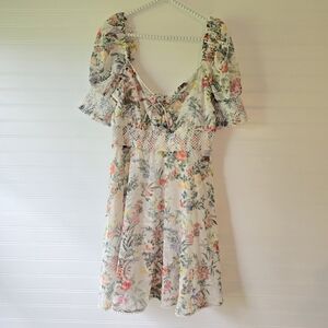 NWT Alice + Olivia Kristie Floral Print Broderie Anglaise Chiffon Mini D…