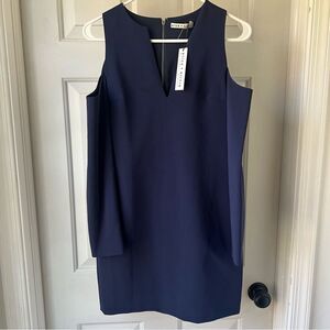 NWT Alice + Olivia Navy Blue Cold Shoulder Niko Sheath Dress Sz 4