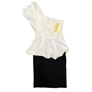 NWT Alice + Olivia Peplum Crinkle Black and White Dress No Belt Side Zip Size 0