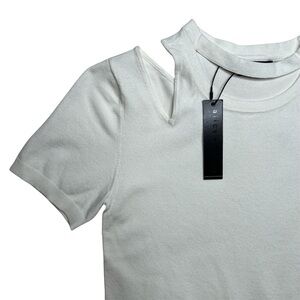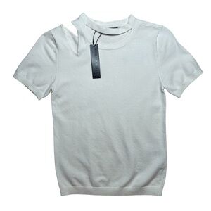 NWT Alice + Olivia Roslyn Cut Out Short Sleeve Top in White Size S