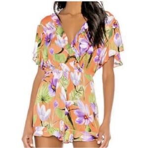 NWT Alice + Olivia Sachi Floral Palm Coral Romper Size 0