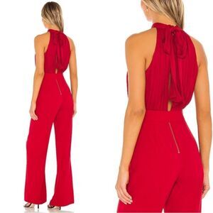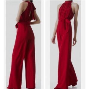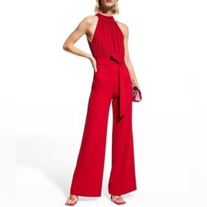 NWT Alice + Olivia Thelma Red Jumpsuit Halter Neck Wide Leg Belted Size 2