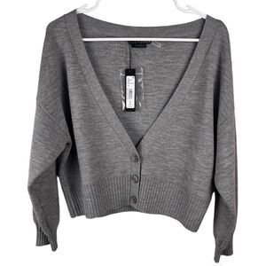 NWT Alice + Olivia V-neck Wool Heather Grey Cardigan Sweater Size M