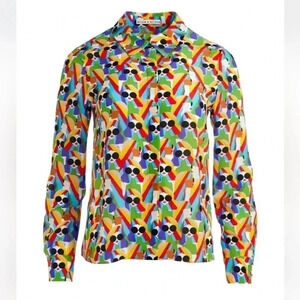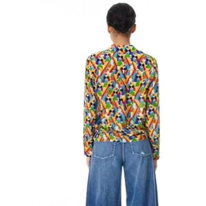 NWT Alice & Olivia WILLA PLACKET TOP Button Down Silk Shirt Mod Stace XS