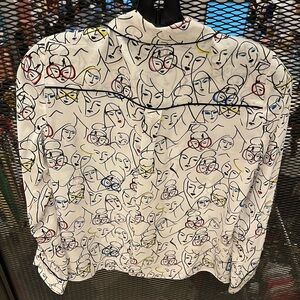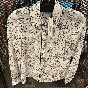 NWT Alice + Olivia Willa Placket Top With Piping Bisous Stacey White XS