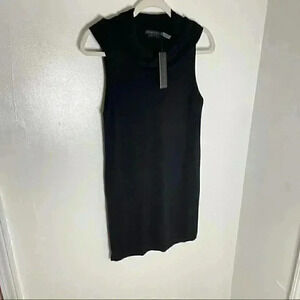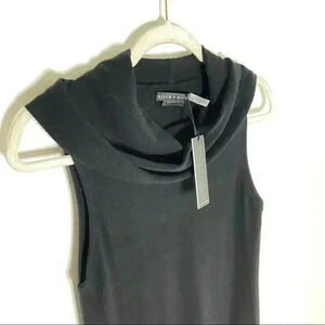 Description: Super soft sleeveless lightweight wool and cashmere blend cowl neck sweater that comes to mid thigh. Side slits.