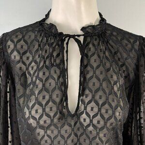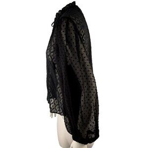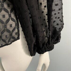 NWT Alice + Olivia by Stacey Bendet Black Sheer Balloon Sleeves Blouse Top XS
