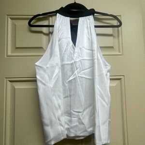NWT Alice & Olivia sleeveless blouse. Sz large. Black tie at neck. Keyhole cut out. Lined. Perfect for date night or under a blazer for work. Easy to wear with denim or dressed up. Smoke free home.