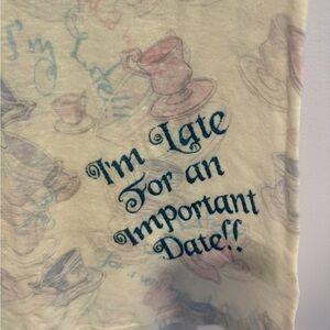 Size medium new with tag vintage Disney store Alice in wonderland tank top with im late in glitter