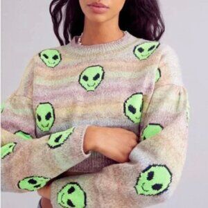 ⭐️ NWT Alien Hippie Hipster Space Modern Chic Glam Trendy Crop Sweater Pullover