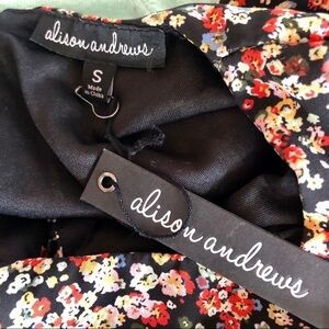 NWT Alison Andrews short sleeved micro floral dress with flounces across chest, sleeves and bottom hem. Straight silhouette. Fully lined.