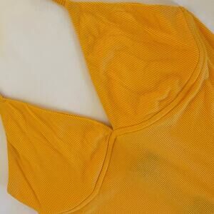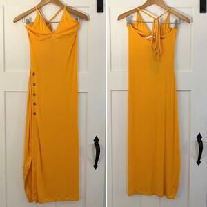 NWT Alix NYC Dress Halter Midi Yellow Side Slit Open Back Revolve medium