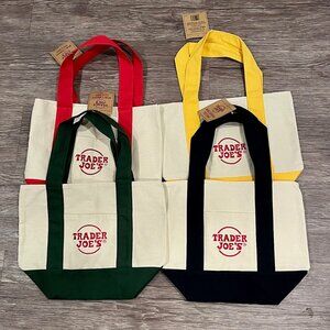 NWT All 4 Trader Joe’s Mini Canvas Tote Lunch Bags Red Yellow Green Blue