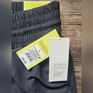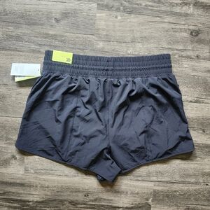 NWT All In Motion Black Athletic Elastic Waist Shorts, new with tags, size large, waist 16.5 inches across front flat lay with elastic waistband stretch, length 14 inches tapered to sides, inseam 3 inches, moisture wicking, quick dry, 4 way stretch, upf 50 plus, lined, adjustable waistband, pockets to sides, 1 zippered