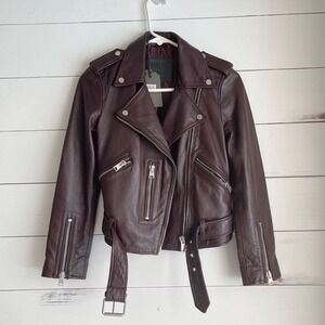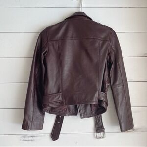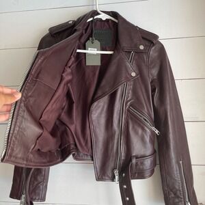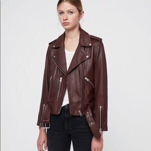 NWT All Saints Balfern Biker Leather Jacket Deep Red Size US 0