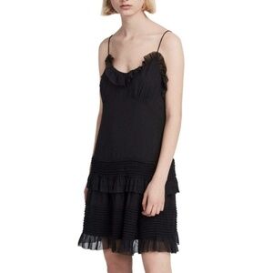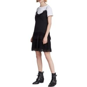 NWT All Saints Sanse Tiered Frilly Mini Dress in Black Sz. 4