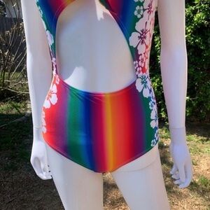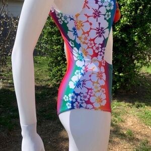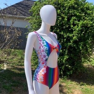 💋NWT All Things Mochi Hawaiian Rainbow Hibiscus Floral Print 1Pc Swim Suit