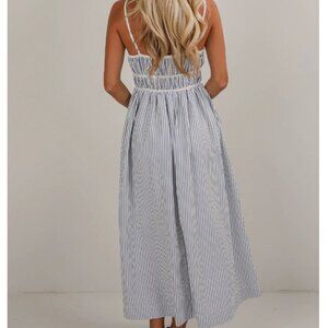 NWT All in Favor Blue Stripe Flowy String Maxi Dress