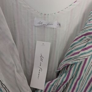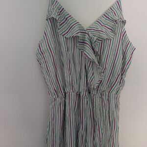 NWT All in Favor Striped Ruffle Front Wide Leg Jumpsuit