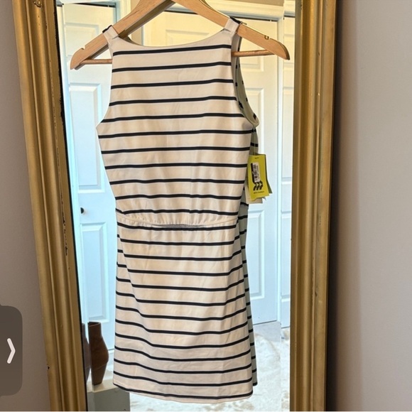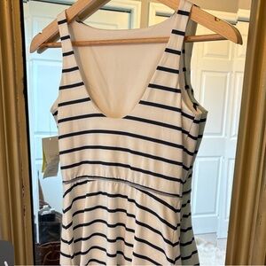 Stylish sleeveless dress with navy stripes. Ideal for active wear.