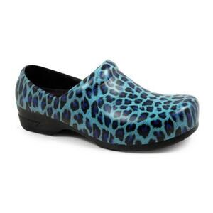 NWT AllHeart Unisex Blue Cheetah Print Closed Back Slip Resistant Clog 8 MED