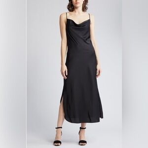 This smooth slipdress is cut from rich satin with slender adjustable straps and a drapey cowl neck.