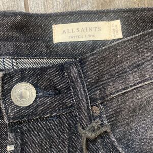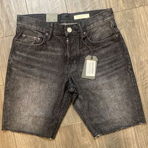 NWT AllSaints Size 28 Switch Raw Hem Shorts in Washed Black Button Fly 9.5” Inseam