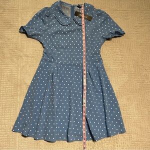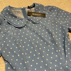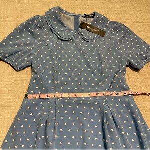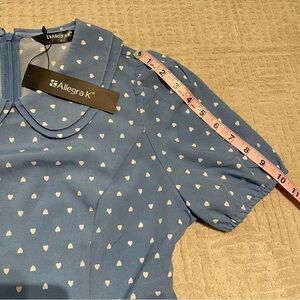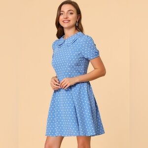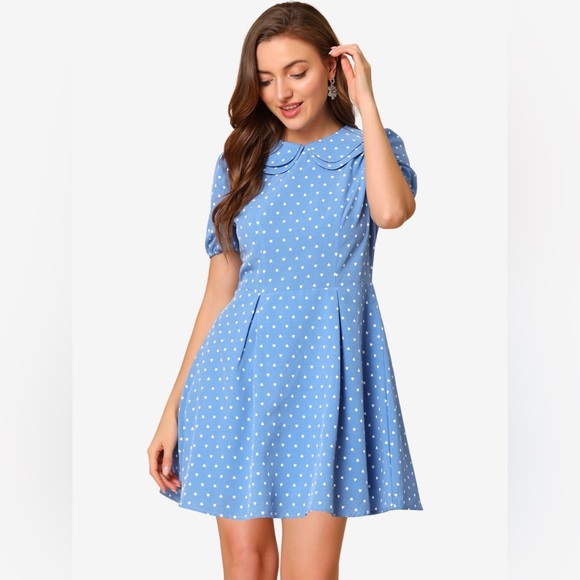 NWT Allegra K Heart Print Short Sleeve A-Line Peter Pan Collar Mini Dress Blue