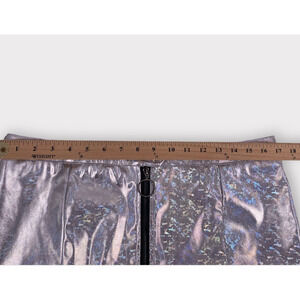 NWT Allegra K Silver Metallic Shiny Holographic Zipper Mini Skirt XL