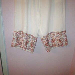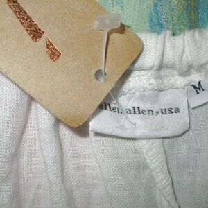 NWT Allen Allen LINEN Embroidered Size M PANTS Pockets WIDE LEG Capri HIGH RISE