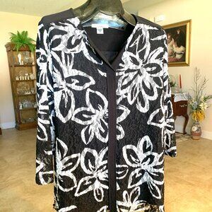 NWT Allison Daley Black & White Floral Lace Overlay Tunic Top size 2X - $43