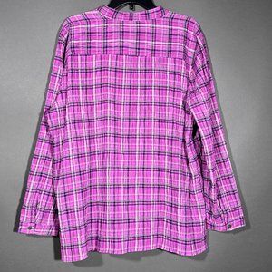 NWT Allison Daley Button Down Plaid Pink Shirt Size XL