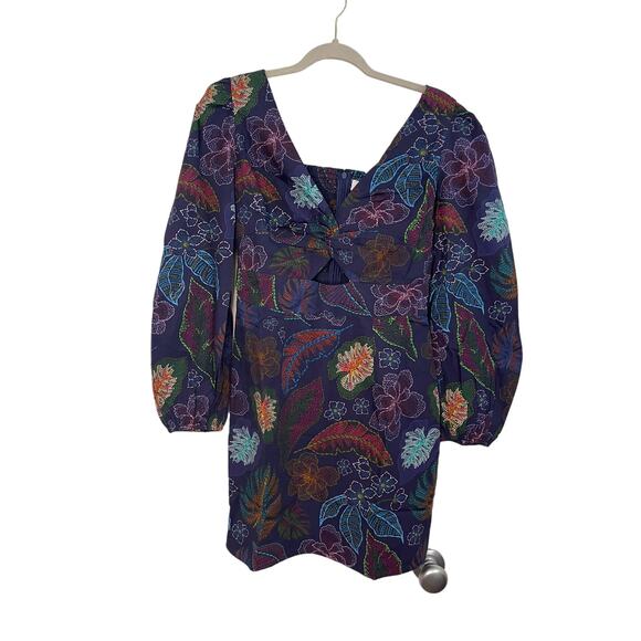 New With Tags Allison New York Flora Mini Dress in Navy Floral. Body of dress is lined. Poofy sleeves. Cut out in front. Shirred back adds a small amount of stretch. Back hidden zipper.