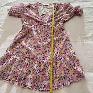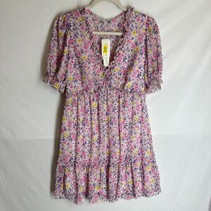 NWT Allison and Kelly Purple Pink Floral Mini Tier Dress Short Sleeve V- Neck L