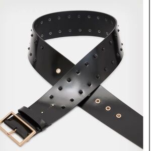 New With Tags Allsaints The Maxie Stud Belt has two rows of pyramid studs. It's crafted from leather and is fully adjustable.