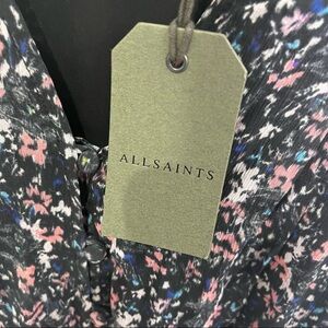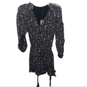 NWT Allsaints Size 0 Kaylee Stretch Floral Romper V-neck Long Sleeves Viscose