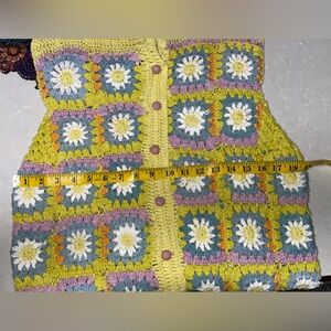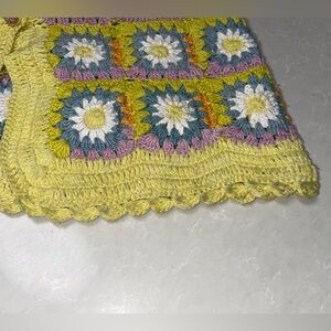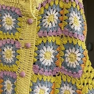Embrace a vibrant look with this stunning yellow and blue crochet dress. Perfect for sunny days and casual outings.