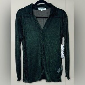 NWT Almost Famous Sheer Button Down Metallic Stripe Shirt Medium