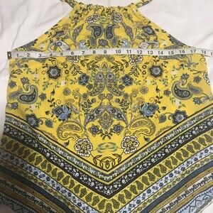 NWT Almost Famous halter top Womens Small yellow floral paisley tie fluttery