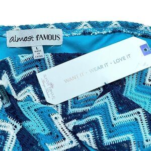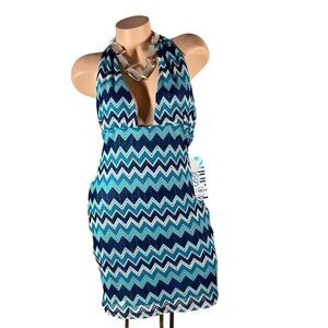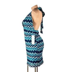 NWT Almost famous Sz L Teal White Chevron Backless Cleavage Sexy Fun mini dress