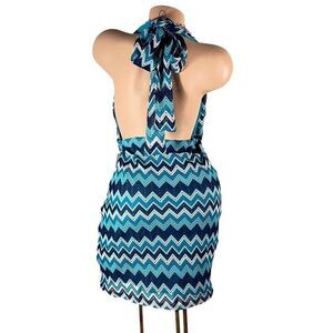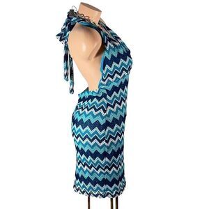 Blue Teal White Chevron Backless Cleavage Sexy Fun mini dress