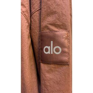 Alo's women's clay rain jacket in size 2X offers a modern, relaxed fit with a practical hood. The stylish design ensures comfort and protection in wet conditions. A versatile addition to any wardrobe, this jacket is ideal for layering during transitional weather.
