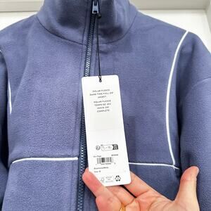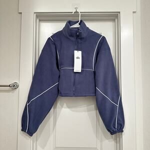 NWT Alo Polar Fleece Game Time Full Zip Jacket in Bluestone/White Size Medium