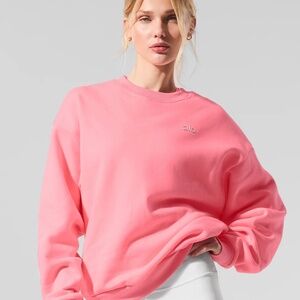 NWT Alo Yoga Accolade Crew Neck Pullover in Neon Bubblegum Size Small